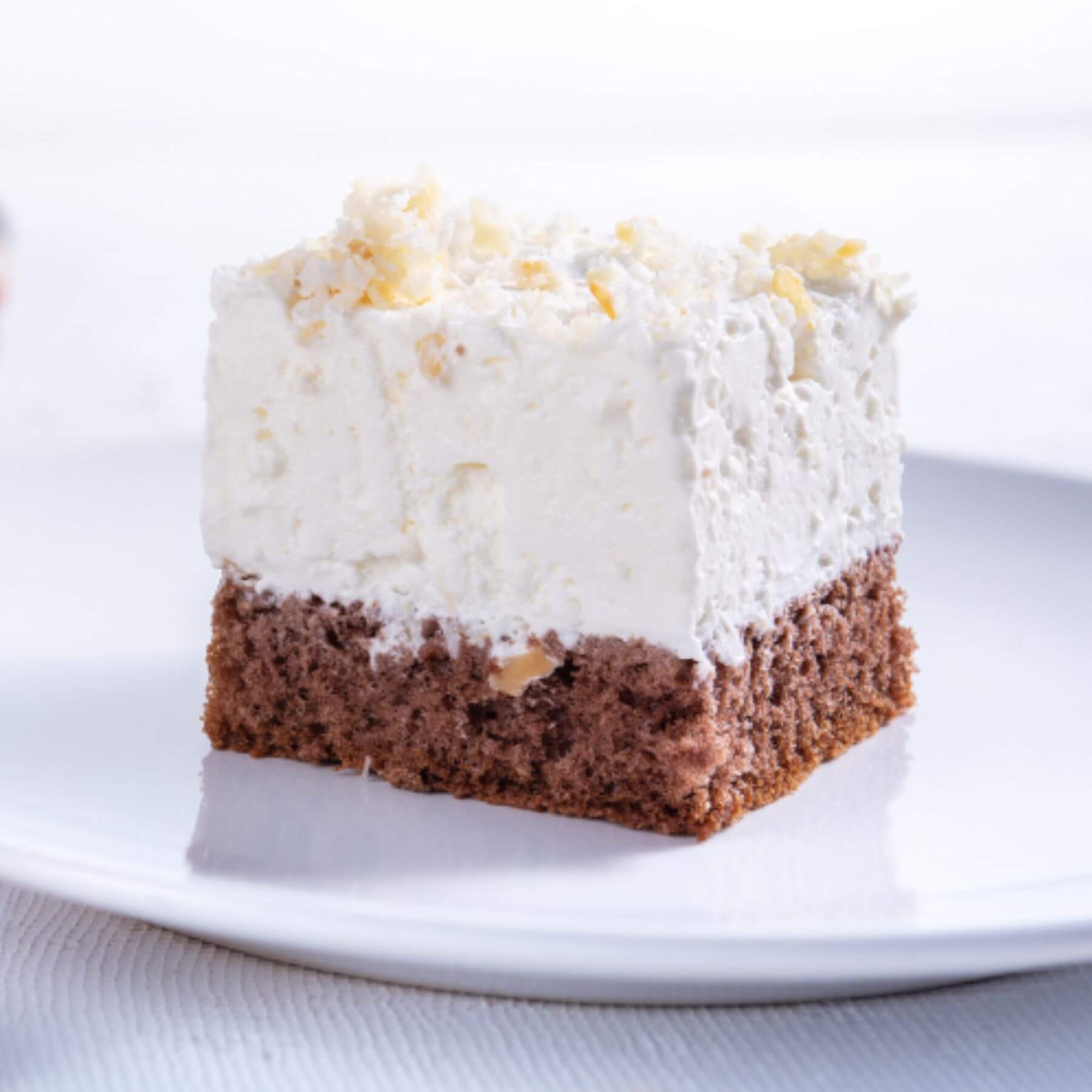 Biały biszkopt stanowi idealną bazę dla tego wyjątkowego ciasta, tworząc subtelny kontrast do intensywnego smaku kokosowego. Pianka kokosowa, wzbogacona kawałkami prawdziwego kokosa, dodaje ciastu wyjątkowej konsystencji i soczystego smaku. Nutka spirytusu subtelnie podkreśla walory smakowe, nadając całości charakterystycznego aromatu.