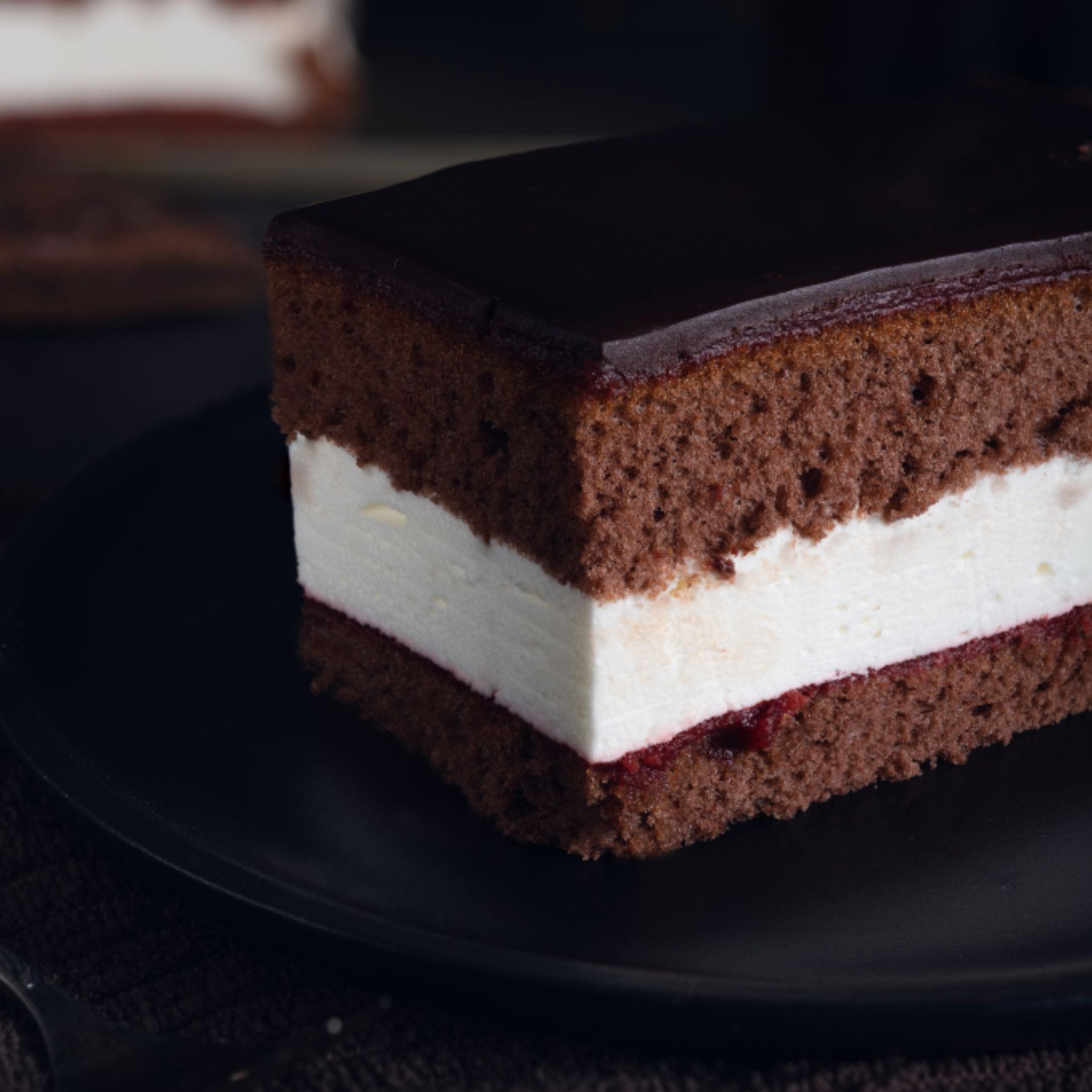 Ciemny biszkopt, stanowiący bazę tego wypieku, ma głęboki i intensywny smak czekolady, który od razu wzbudza apetyt. Następnie marmolada wieloowocowa dodaje do tego ciasta nuty soczystych owoców, które poprawiają smak i nadają mu świeżości.