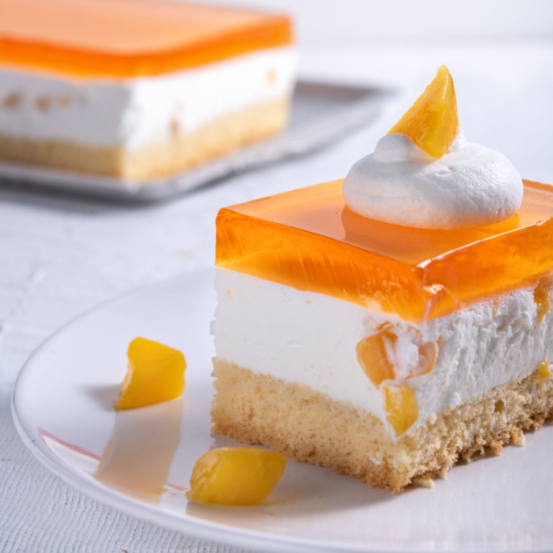 Nasz wyjątkowy Sernik z brzoskwiniami to prawdziwa uczta smakowa, która zaspokoi Twoje pragnienie słodyczy i owocowej świeżości. To połączenie delikatnego jasnego biszkoptu, kremowej masy serowo-śmietanowej z kawałkami soczystych brzoskwiń oraz apetycznej pomarańczowej galaretki na górze.