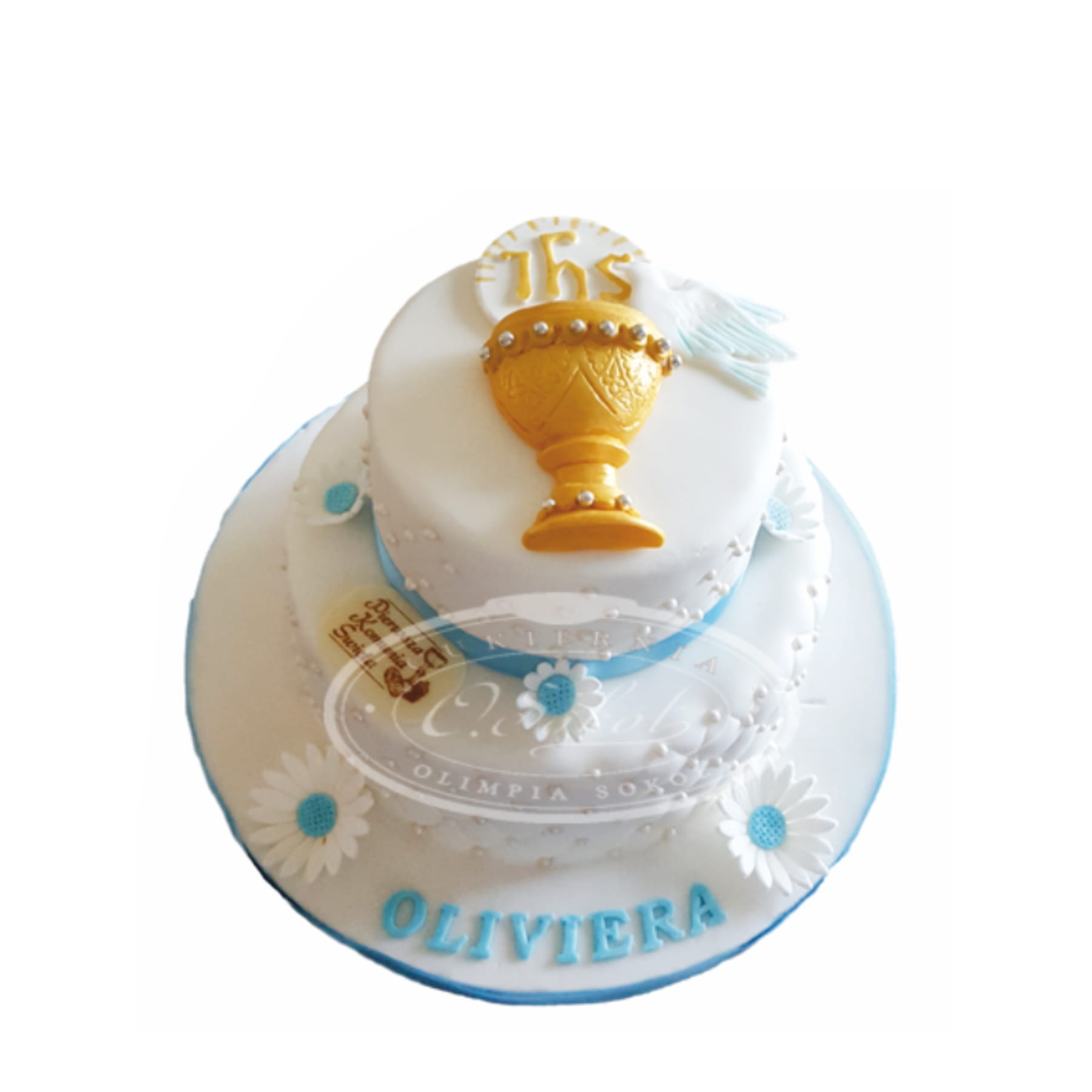Tort komunijny wzór Tk11 | złoty kielich z gołąbkiem