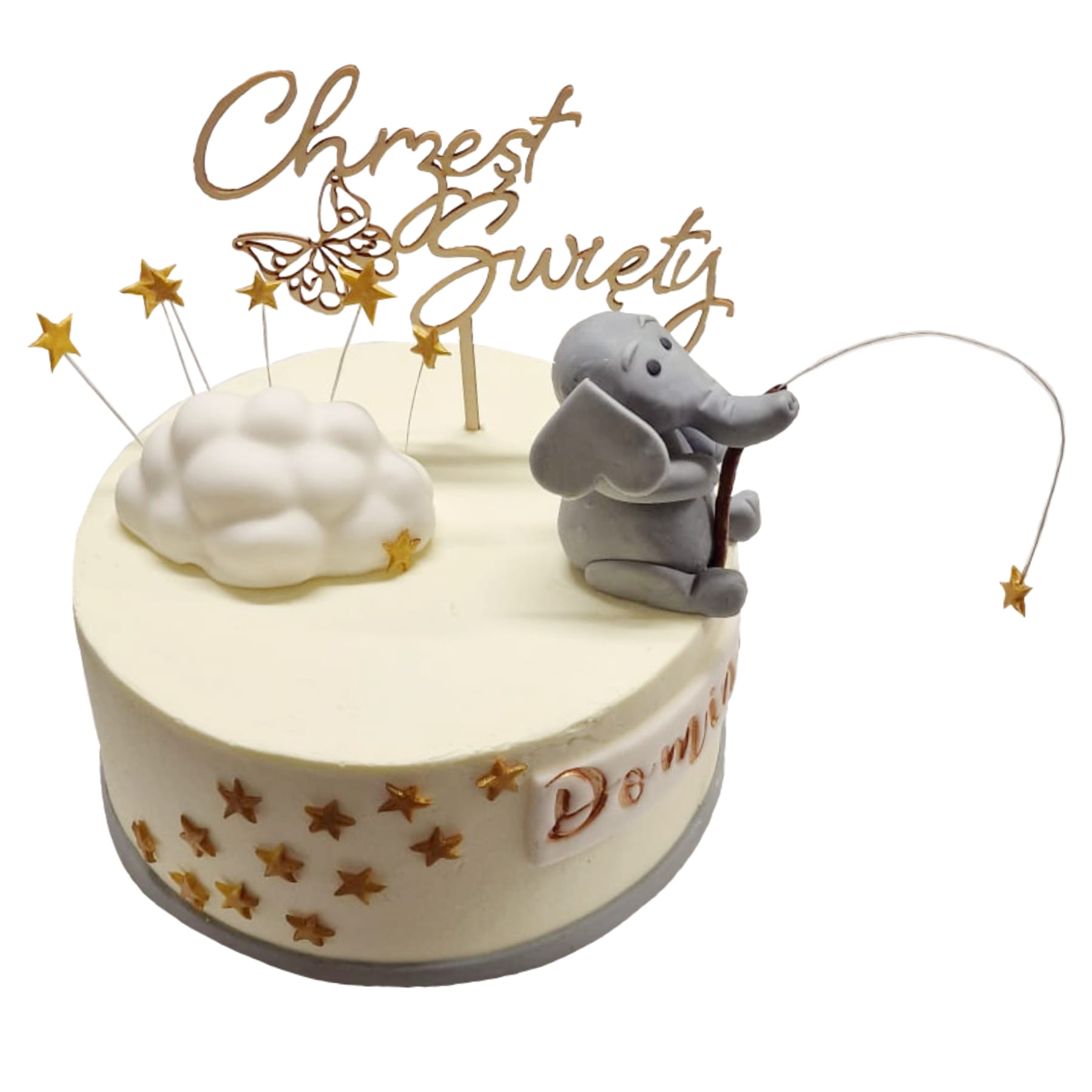 Tort na Chrzest Święty wzór Tch13 | słonik z chmurką i gwiazdkami