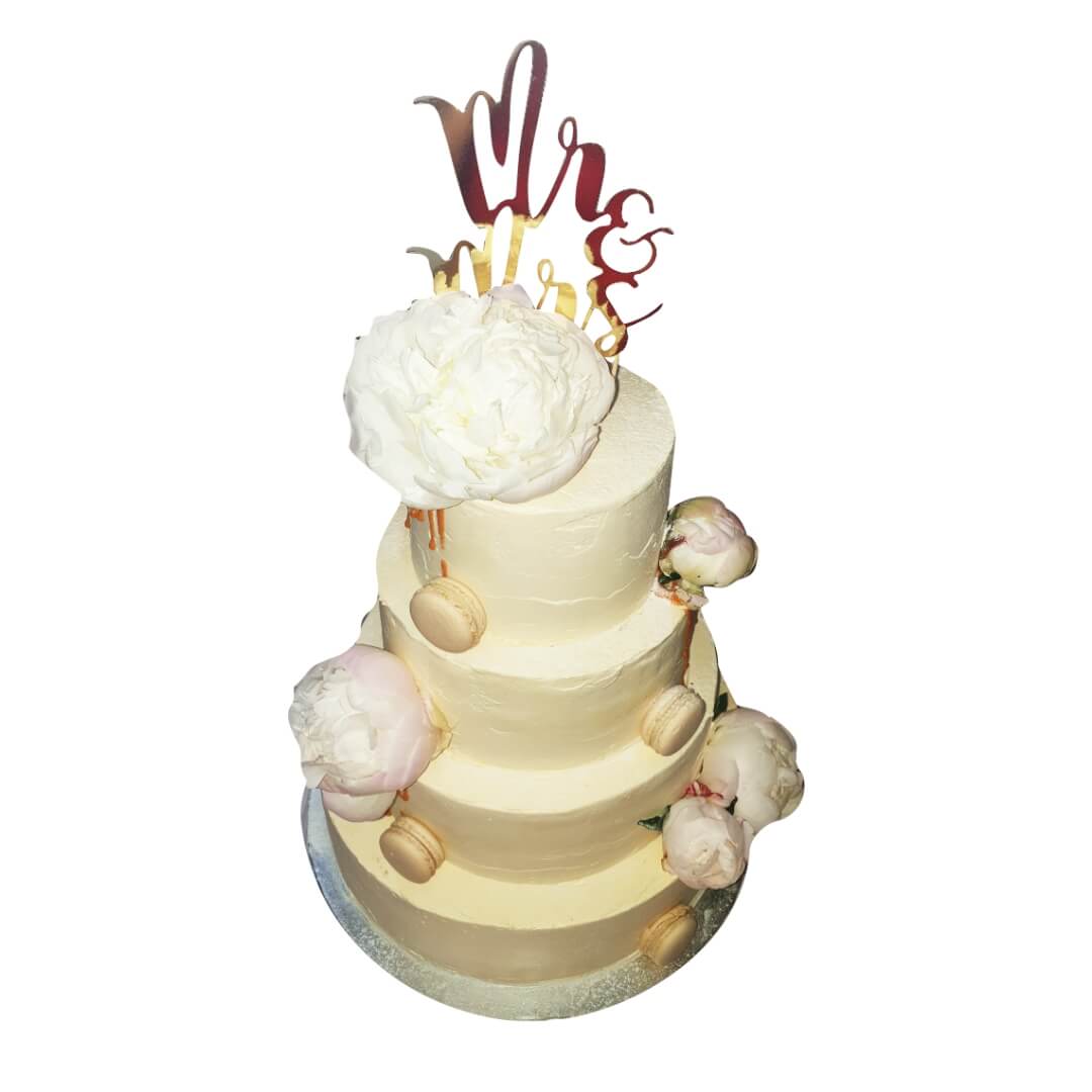 Tort weselny ecru wzór Tzk03 | makaroniki i piwonie