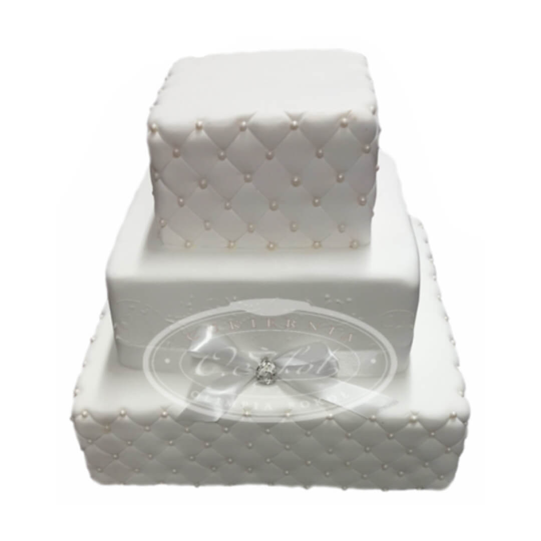 Tort weselny kwadratowy pikowany biały wzór Tp24 | elegancka kokarda