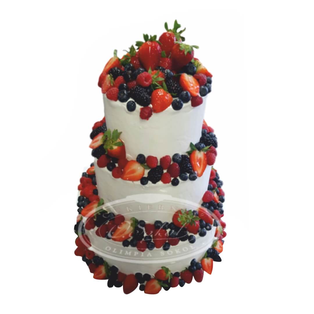 Tort weselny piętrowy biały wzór Ncr06 | Semi Naked z owocami