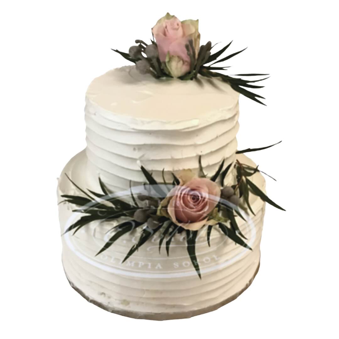 Tort weselny piętrowy biały wzór Tzk07 | różowe róże