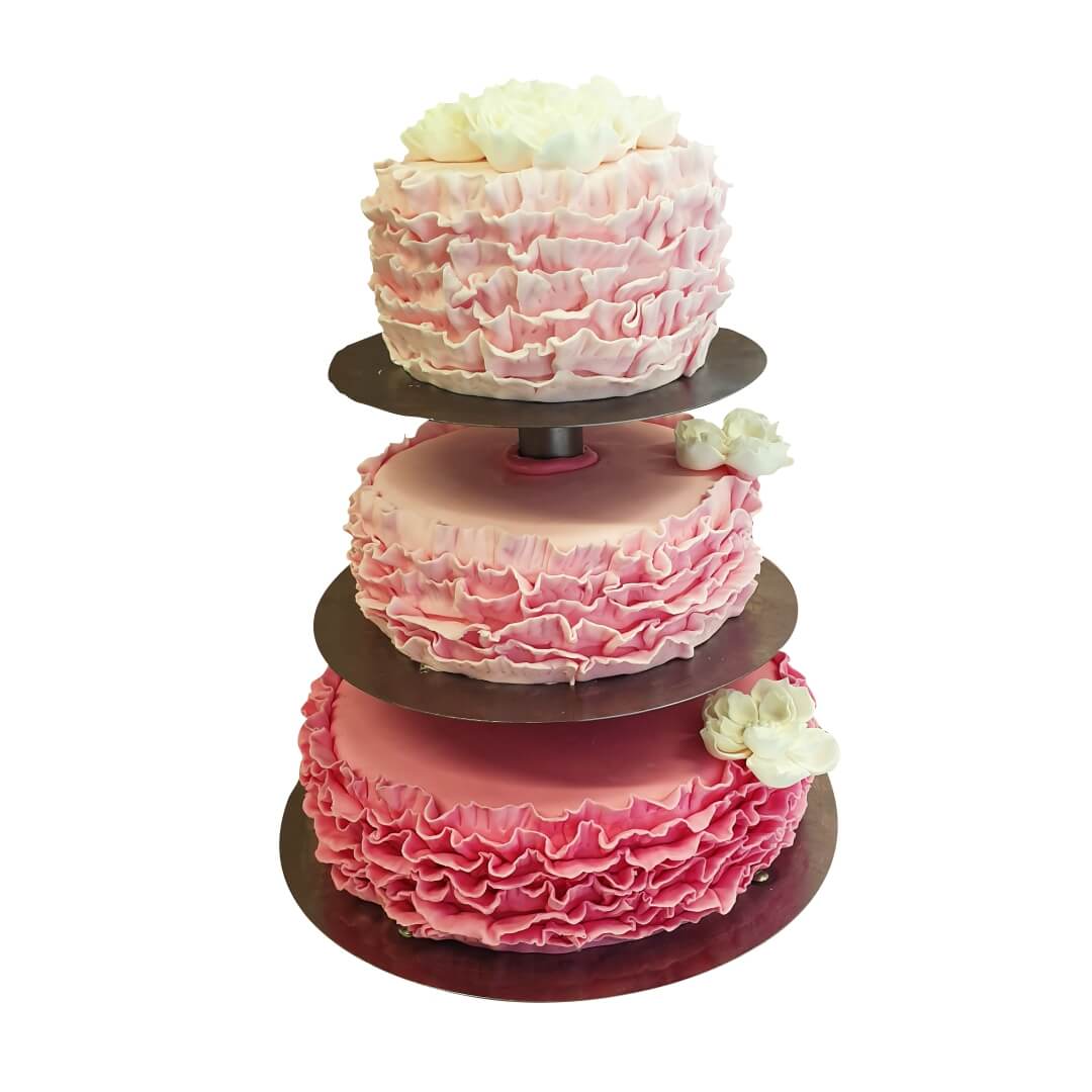 Tort weselny piętrowy na stelażu wzór Tzk39 | Ombre z różowymi falbankami