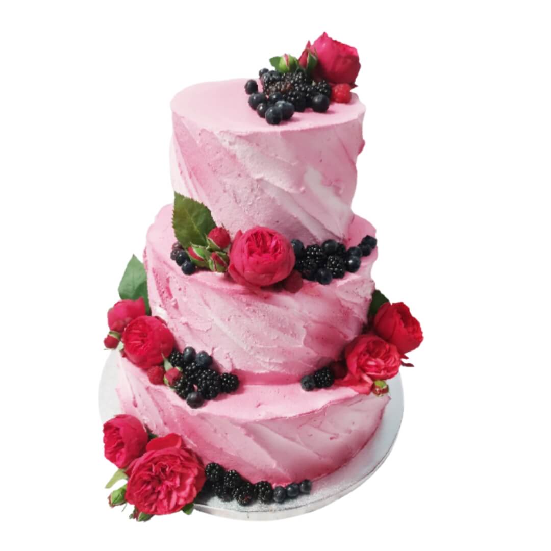 Tort weselny piętrowy wzór Tzk11 | czerwone róże, piwonie i owoce