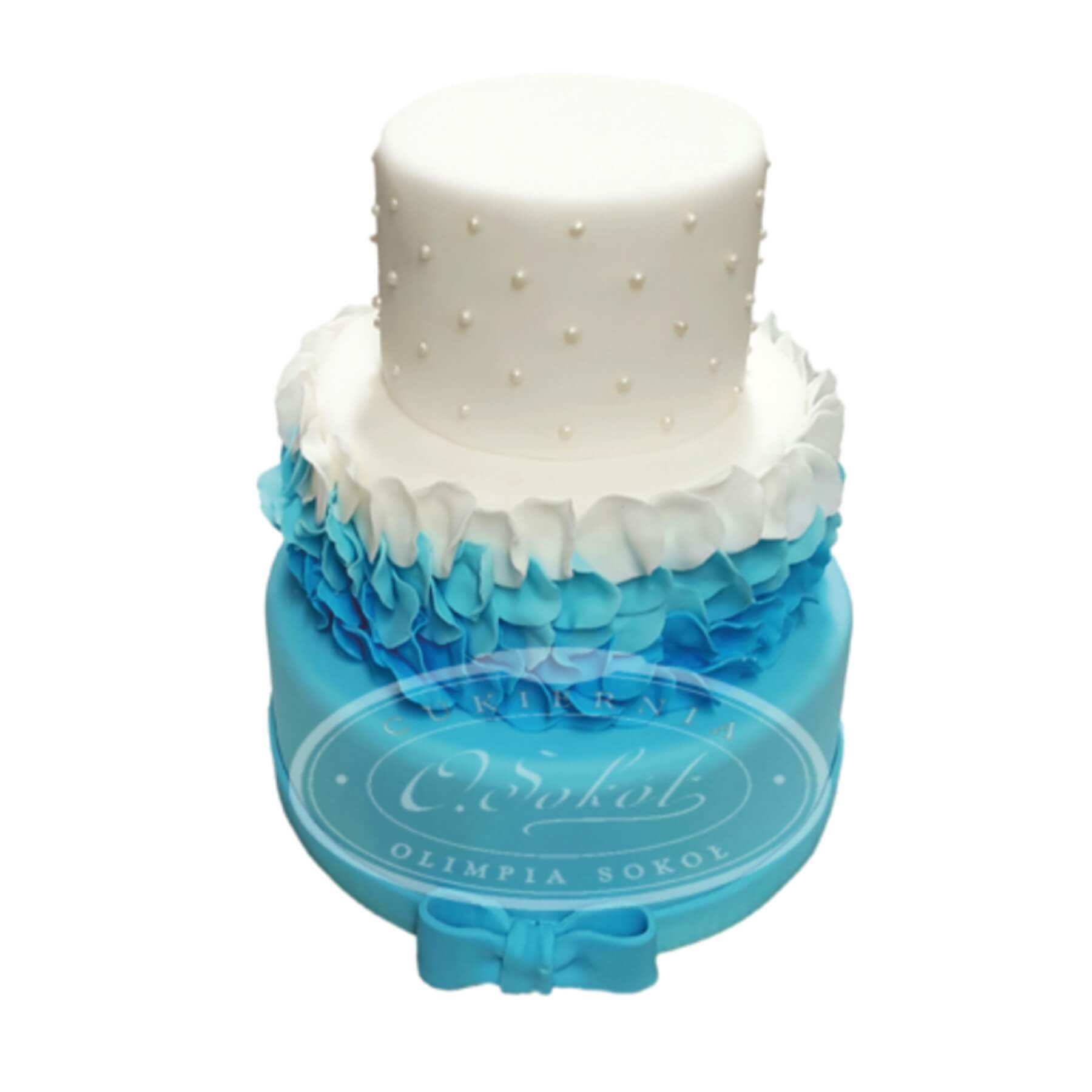 Tort weselny wzór Tp27 | Ombre z niebieskimi płatkami i białymi perełkami